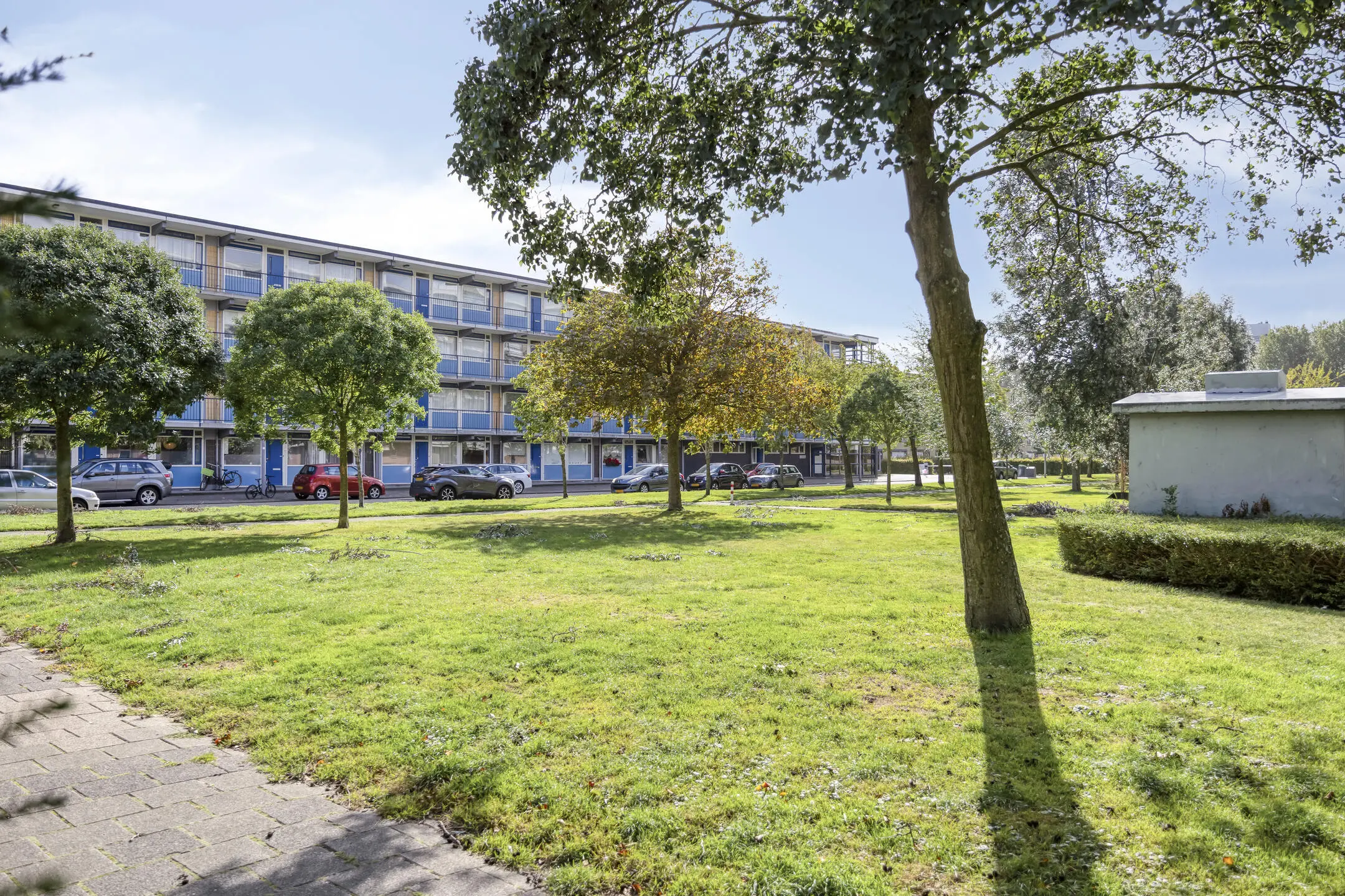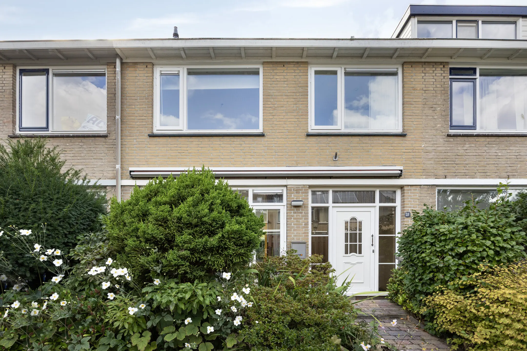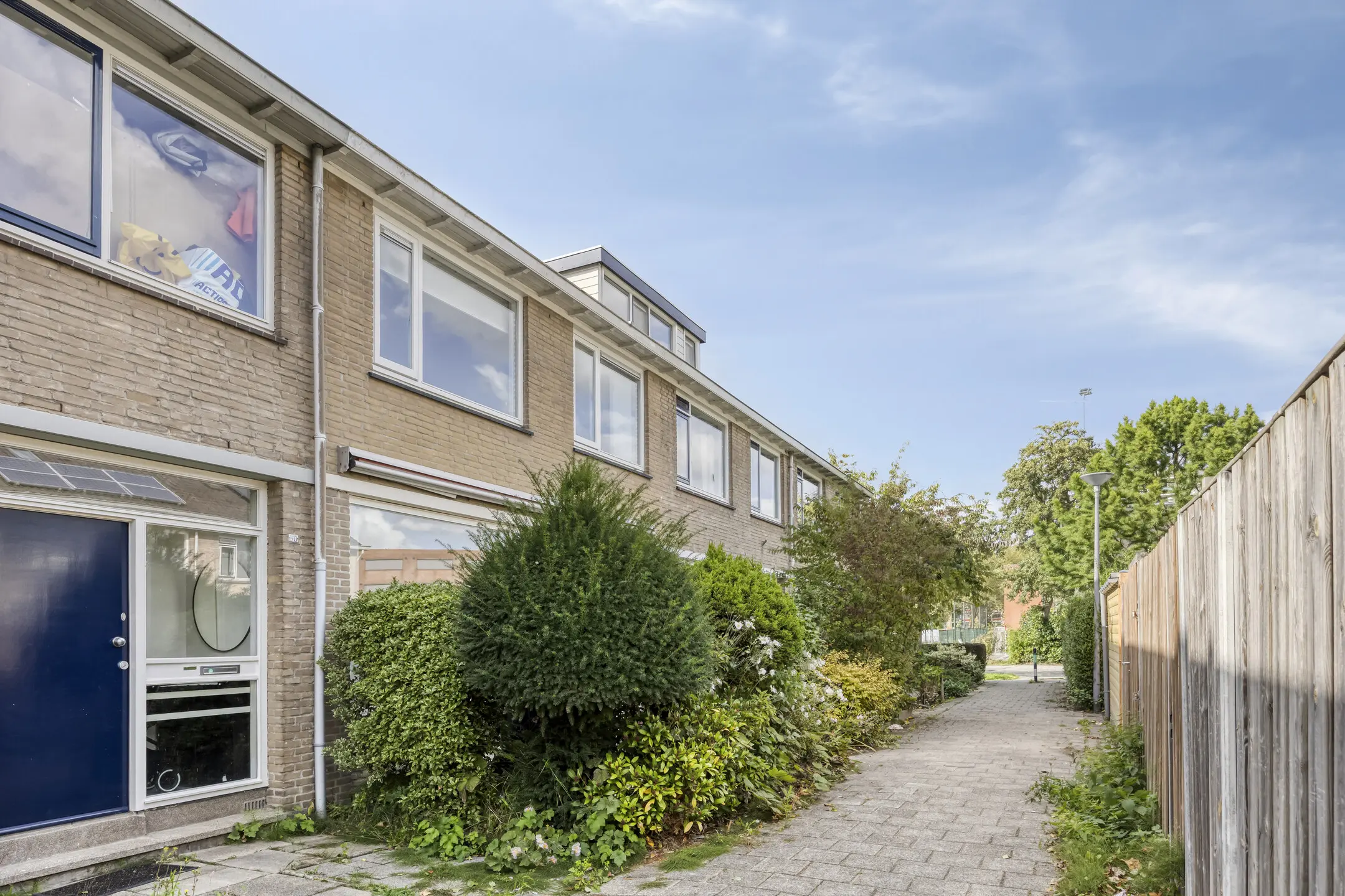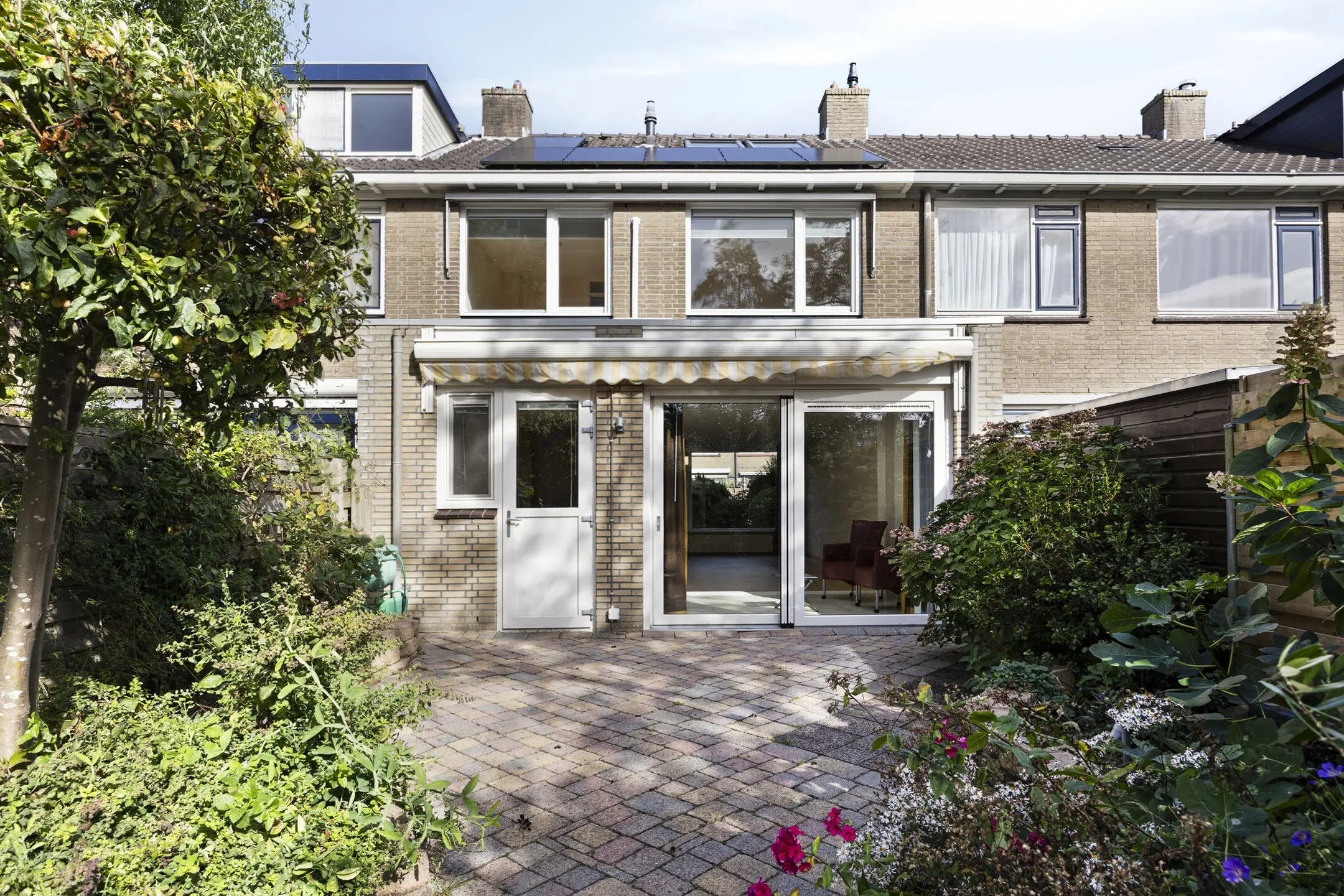Verzorgde op het zuidwesten gelegen achtertuin met een achterom, een buitenkraan, verlichting en een houten berging met elektra. De tuin is fraai aangelegd met vaste beplanting en het gestreepte zonnescherm met elektrische bediening houdt de zon uit de woonkamer. De op het noordoosten gelegen voortuin is eveneens voorzien van vaste beplanting en grenst aan een kindvriendelijk autovrij voetpad.