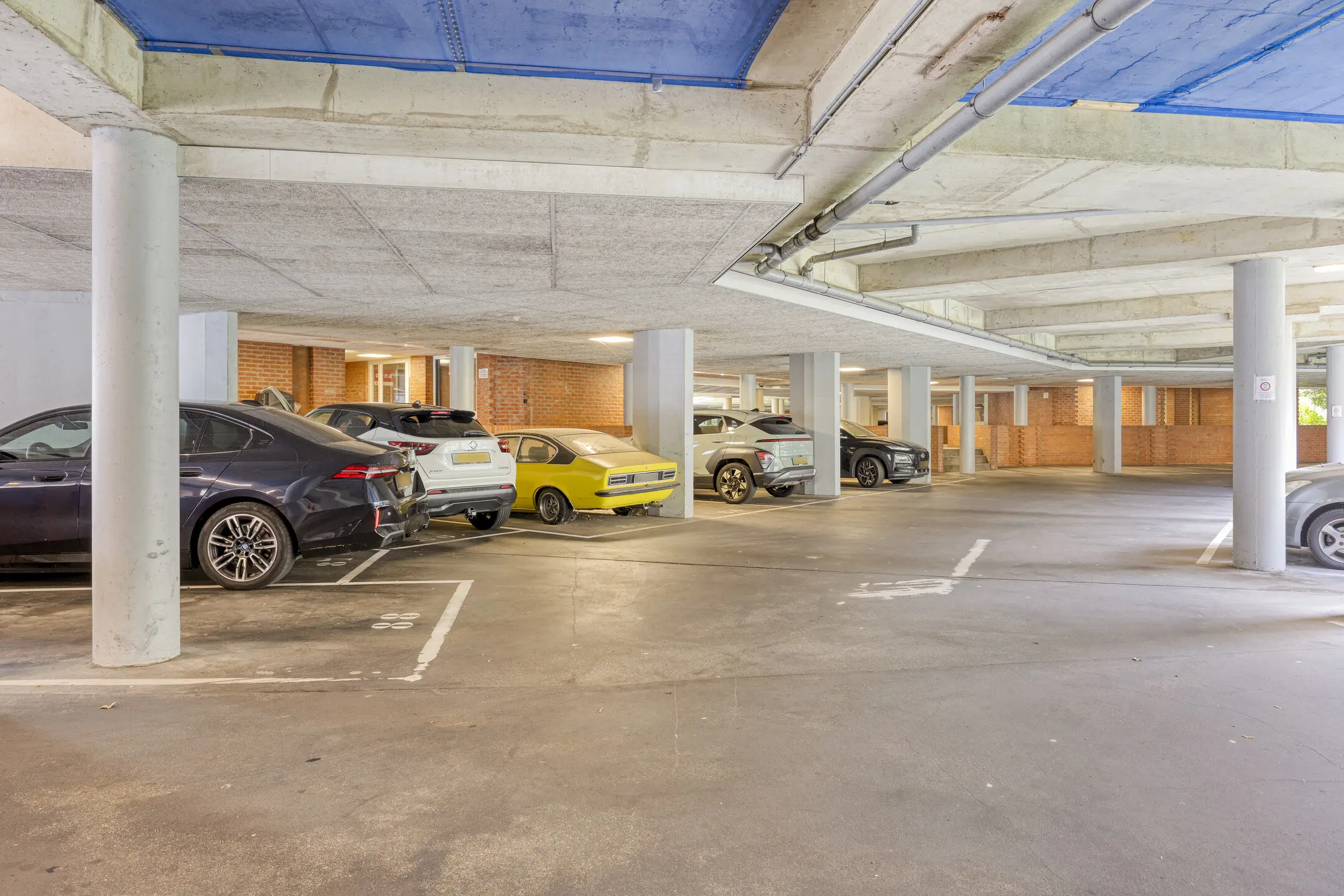 (nummer 87) in de afgesloten parkeergarage met automatisch op afstand te bedienen roldeur.