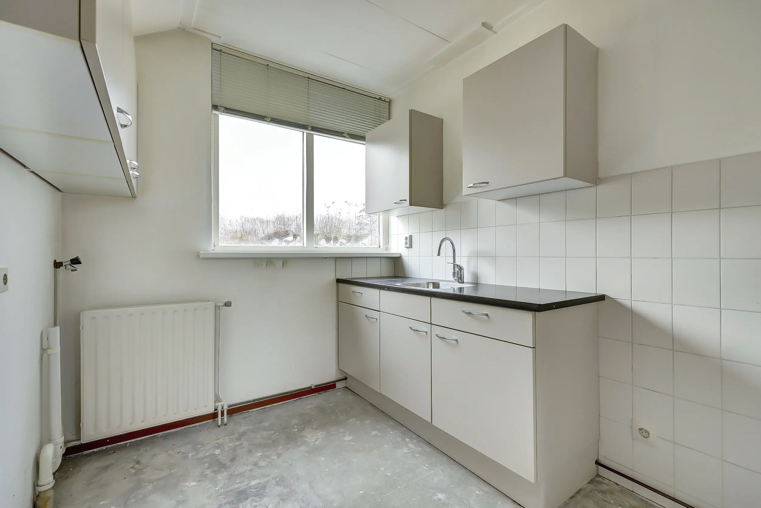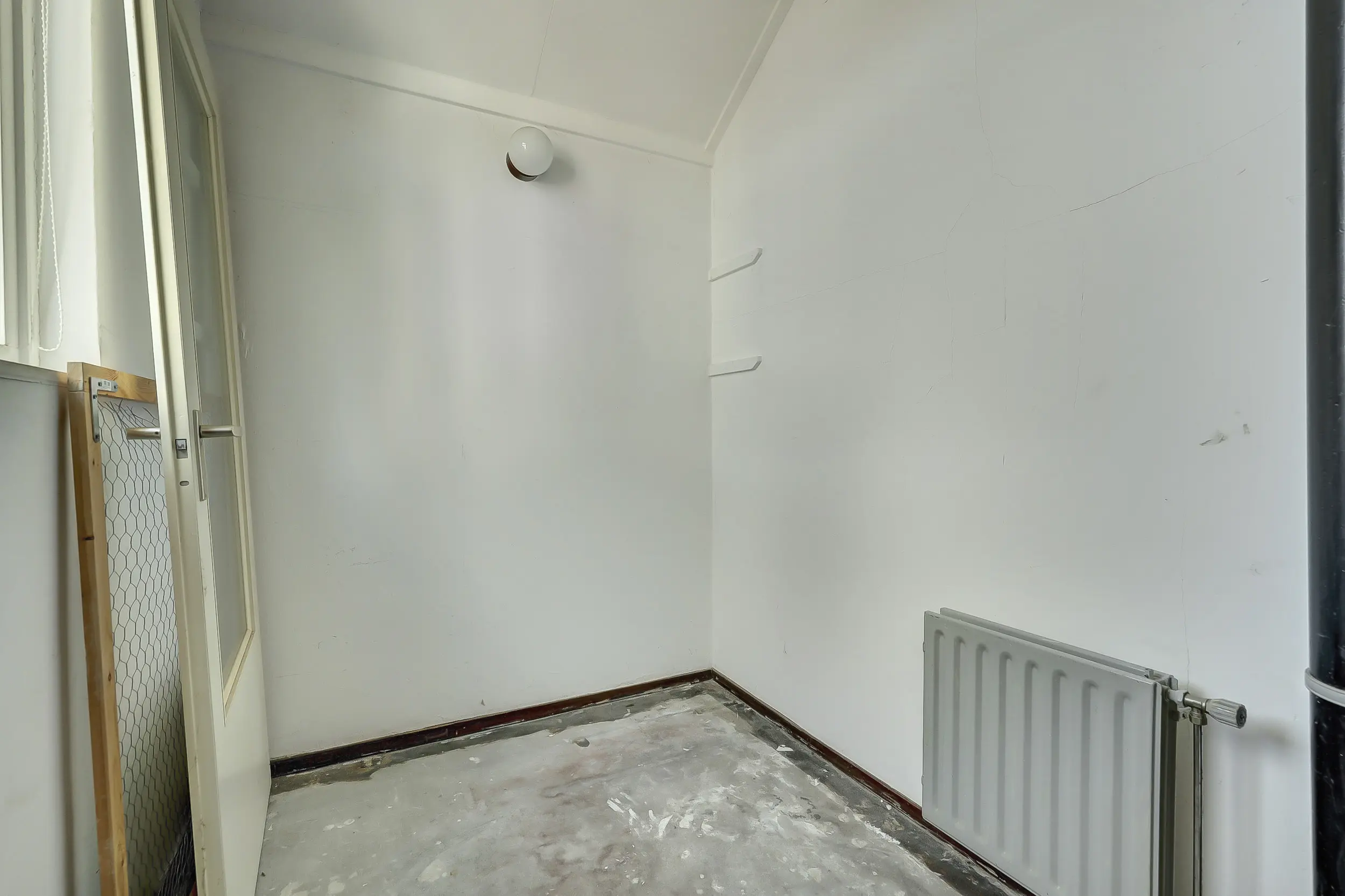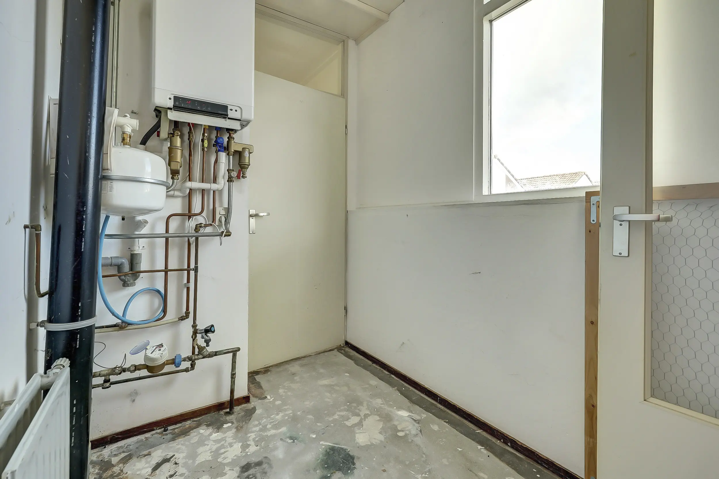 De woning is te bereiken door middel van het trappenhuis en de galerij. Entree met meterkast, inpandige bijkeuken/berging CV-ketel (Intergas van 2017).
