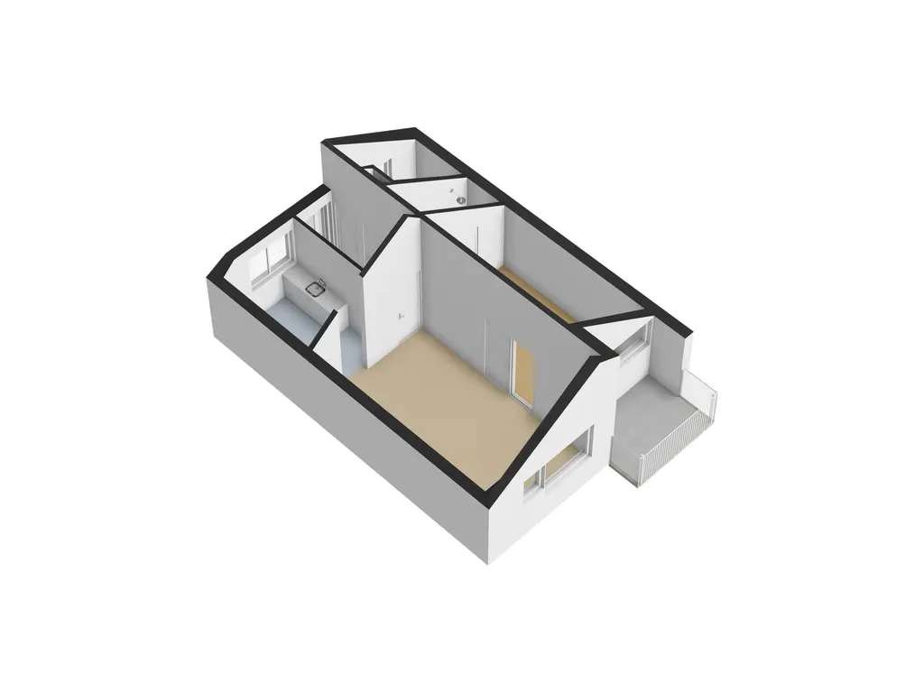 De woonkamer heeft een mooie raampartij met hoog plafond. Vanaf hier is toegang tot de ruime slaapkamer met een deur naar het balkon. De badkamer is voorzien van een toilet, douche met thermostaatkraan en wastafel. De badkamer is zowel vanuit de entree/hal als de slaapkamer te bereiken. De dichte keuken is gelegen aan de voorzijde. Een nette basic keukenopstelling met wasmachineaansluiting.