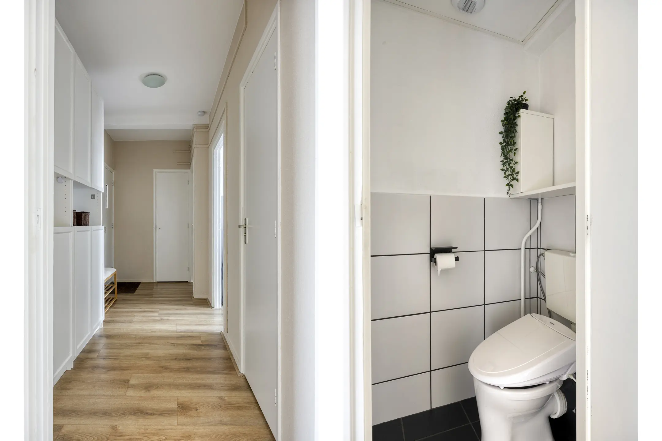 Je komt binnen in een nette hal met toegang tot de verschillende vertrekken, waaronder het separate toilet. De woning is verzorgd afgewerkt en voorzien van een nette laminaatvloer die zorgt voor een warme uitstraling.