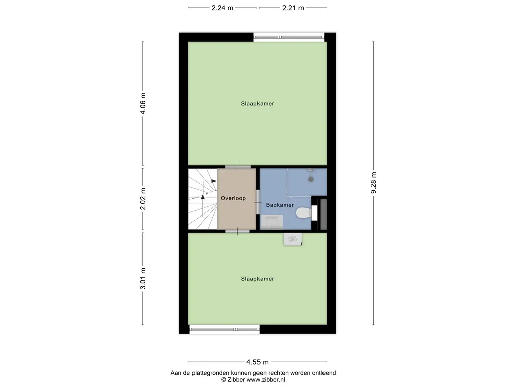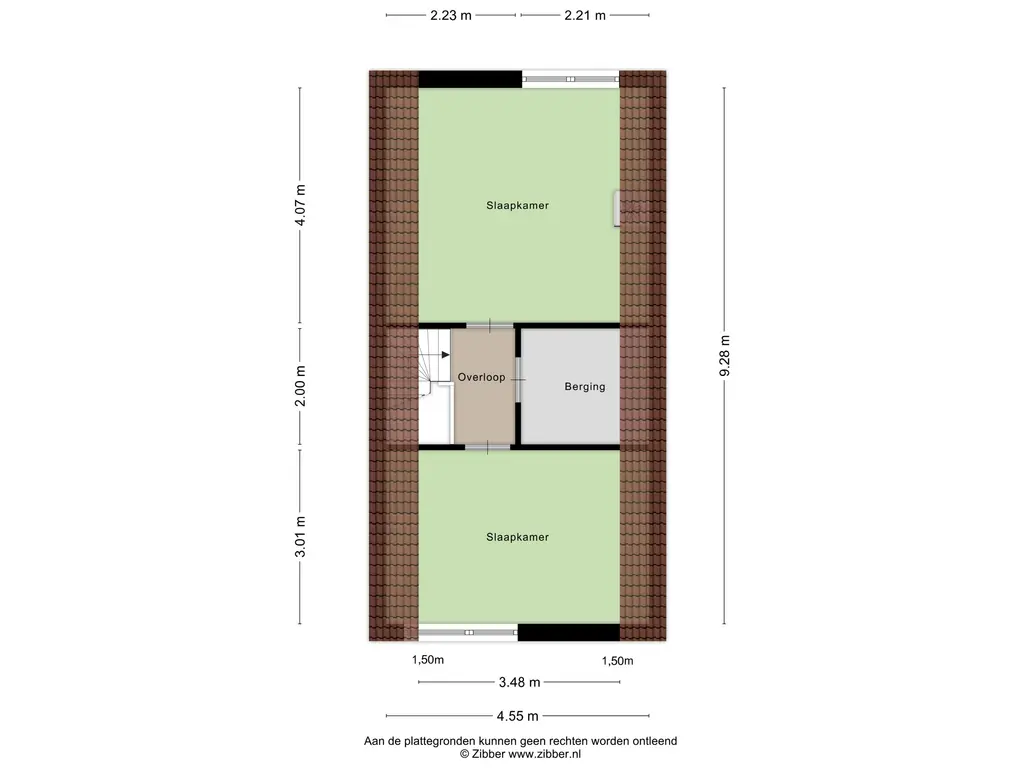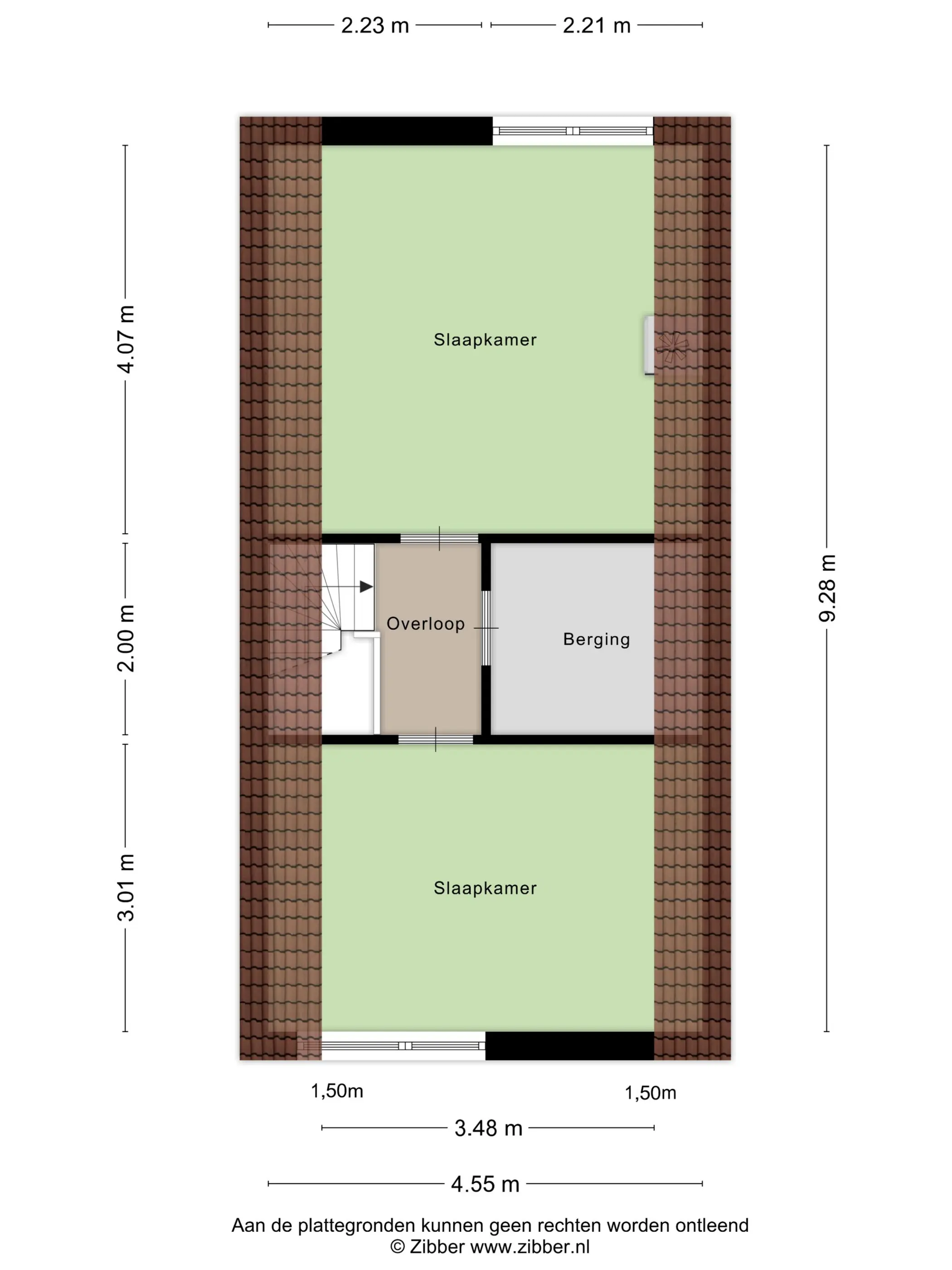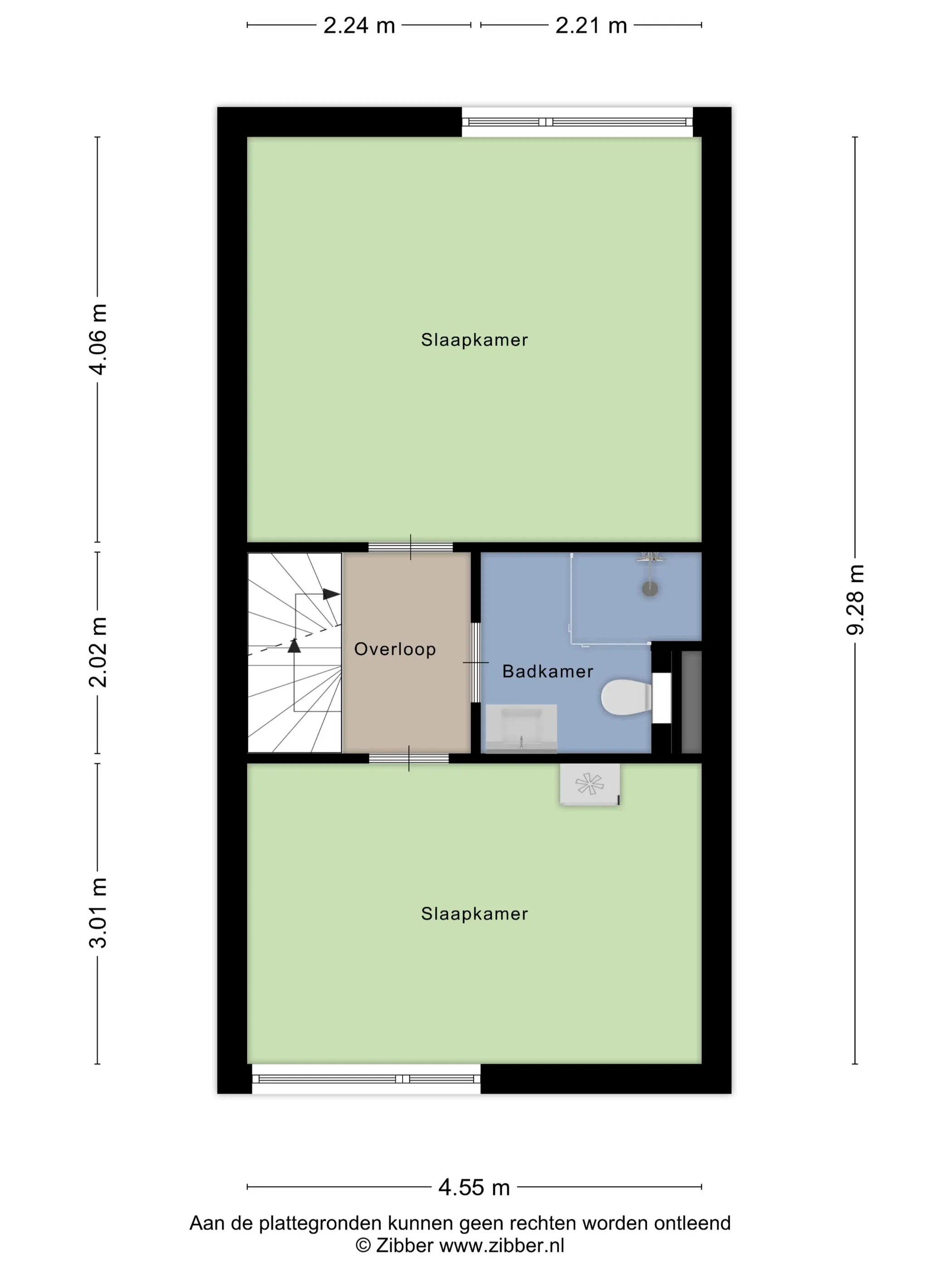 De overloop geeft toegang tot twee ruime slaapkamers en de badkamer. Één slaapkamer is gelegen aan de voorzijde van de woning, de andere slaapkamer aan de achterzijde van de woning.